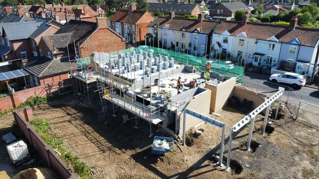 This development is located on Fairfield Road, Saxmundham, and comprises three properties for affordable rent and two for shared ownership. The three affordable rent properties are being constructed using a traditional, conventional build approach to blend seamlessly with the surrounding buildings in the area. Construction is currently underway, and the homes are scheduled for completion in mid-April 2026.