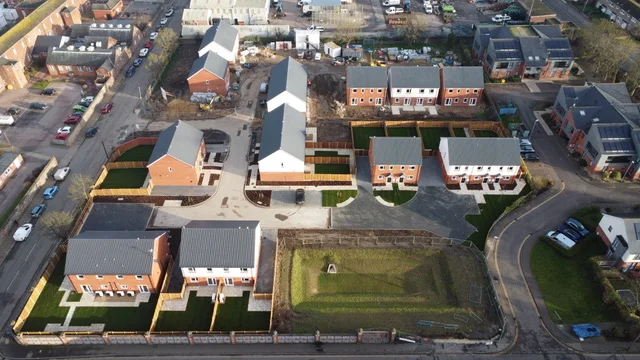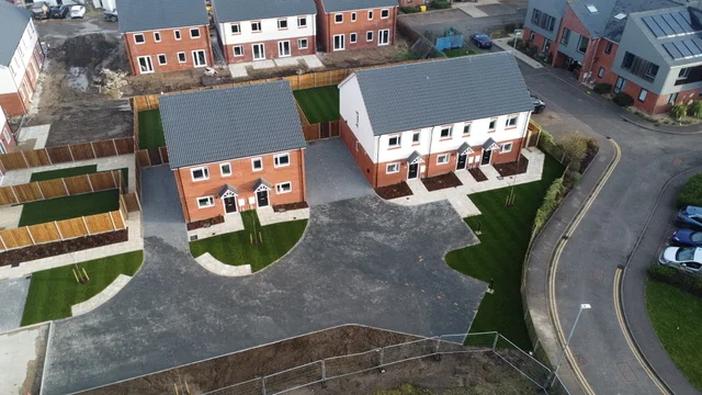 The development includes contemporary, energy-efficient features throughout, with air source heat pumps and electric vehicle charging points installed to support sustainable living and reduce long-term running costs. The project received additional funding from Homes England.
